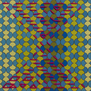 Vortex Drawings are intuitively stitched mixed media works that use yarn to respond to tessellating patterns of irregular shapes.