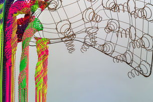 LLM Bed Spring Knotted Vortex (2024), vintage bedspring, iron, rope, 51" x 51" x 115"